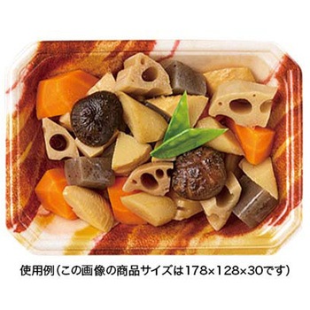 温惣菜・軽食に。量目調整にも対応できるサイズをラインアップ。和洋メニューに最適な新柄のトレーラップ容器です。