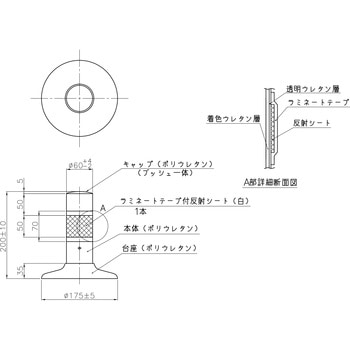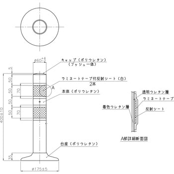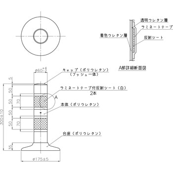 ウレタンゴム製の車止めポールでポストコーンの小型タイプです。接着剤で固定します。反射シート保護構造により反射シートが劣化しにくくなっています。