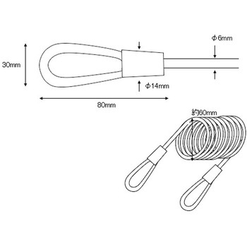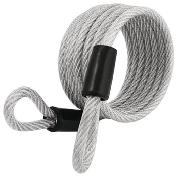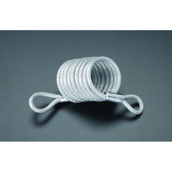 ビニールコート付き。南京錠等を取付けてご使用下さい。スチール製ワイヤーケーブル。