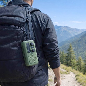 スマホ充電対応のラジオ&LEDライト。ソーラー&ダイナモ発電で、日常~非常時まで。電源不要の3WAY充電(USB充電、ダイナモ発電、ソーラーパネル充電)ダイナモ発電は背面ハンドルを2分間(1分間に130~140回転)回すと単一の機能(ラジオ又は懐中電灯)が10分程度使用可能。SOSアラーム機能付きで災害時に活躍。音量ツマミで電源ON/音量調整、FM/AM切替。スマートフォンの充電も可能。