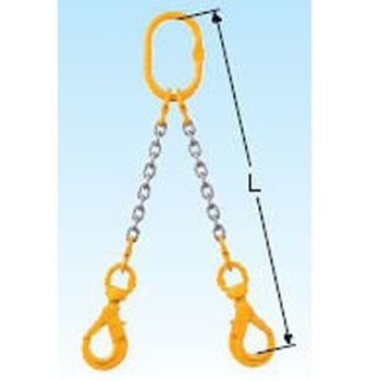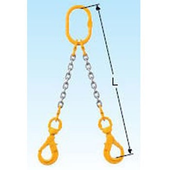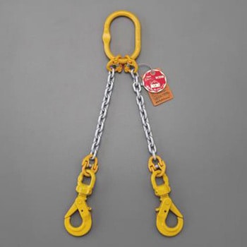 スチール鋳鉄製。スプリングフック(ボール入)。マスターリンク付き。2本吊。アイタイプ:フック、チェーンなどをカップリング、カプラーで結合するだけの簡単な構造。ねじれによる結合トラブルなどがありません。