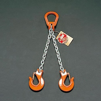 2本吊。スチール鋳鉄製。マスターリンク付き。スリングフック付き。安全で操作が簡単。ねじれによる結合トラブルなどがありません。使用荷重は吊角度0~60度の時の値です。吊角度を大きくすると使用荷重は低下します。ピンタイプ:ロッキングピン・チェーン止めピンは打ち込み式。ネジ式ピンと違い、ピンが自由に回転しますので均一に消耗し、ピンの取り替え時期が一目で分かります。