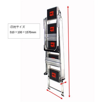 快適さを追求して設計されています。階段を上り下りしているかのように感じられるデザインになっています。ステップに滑り止めが付いているのでバランスを崩すのを防ぎます。建設現場や、溶接作業など、一時的に踏み台が必要な場合に適しています。幅広ステップで脚にゴムも付いているので、滑りやすい場所での作業に役立ちます。手をそえてバランスがとりやすい安全バー付きで安心して作業できます。安全バ―上部には作業時に便利な工具トレー付き。持ち運びや収納に便利な折りたたみ式。移動に便利なキャスター付き。