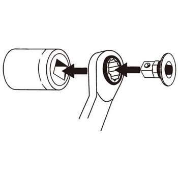 ギアレンチ類に差し込む事で、ラチェットハンドルの様に使用する事が出来ます。ワンタッチでソケットを取外し可能です。対面サイズが異なるタイプのギアレンチには使用できません。