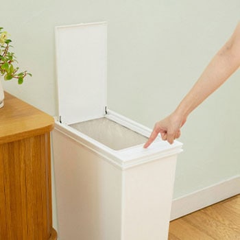指一本で開けられる、ワンプッシュタイプ。フタは開けたままキープできます。大容量の45Lなのに、狭い場所にも置きやすいスリムフォルム。波状分別ホルダー付きで袋をしっかり固定出来ます。波状分別ホルダーには色褪せや錆びを防ぐパウダーコーティング(粉体塗装)。フタは一度取り付けた後取り外せるので、お手入れも付け替えも可能。清潔感のあるホワイトカラー。場所を選ばないシンプルなデザイン。