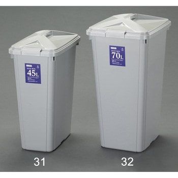 防臭用パッキン付き。蓋のロックと併せて、臭い漏れを防ぎます。市販のポリ袋は70L用が使用できます。塩ビ不使用。製品重量の60%再生素材使用。