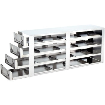 縁の鋭い部分がない304ステンレス製のラックデザイン133×133×52 mmの一般的なフリーズボックスを収納可能フリーズボックスを横から差し込むタイプと引き出しで手前に引き出すタイプの2タイプを用意他社製の超低温フリーザーにも収納可能フリーザー内のスペースを最大限に活用できます