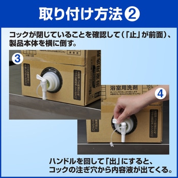 ※使用後は必ずコックを閉める。また、容器を移動させる時や長時間使用しない場合には製品キャップをつけ替えてしっかり閉める。