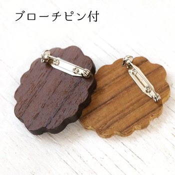 ウッドブローチ スカラップタイプ 銅板・ピン付き