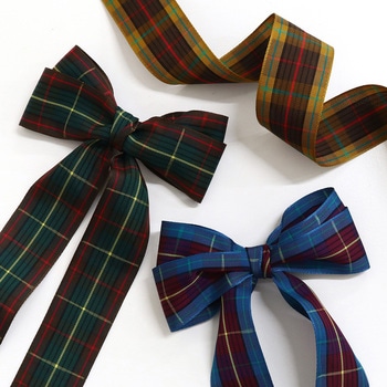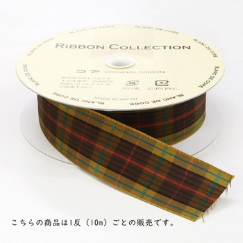 落ち着いたトーンのタータンチェックが映えるリボン。キュプラ×レーヨンのほどよいハリとしなやかさで、結び目がきれいに決まり、ヘアアクセサリーやコサージュ、ギフトラッピングにもおすすめです。