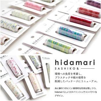 『hidamari刺し子糸』パッケージリニューアル!No.122301 ソリッド(単色)定番カラーのほか、ポップな色やニュアンスのあるスモーキーな色など色彩の魅力が詰まったカラーバリエーション。ミニコーンとジップタイプの袋が特徴的な『hidamari刺し子糸』ですが、環境への負荷を考慮し、プラスチックや紙の使用を削減したパッケージにリニューアルいたします!糸に癖のつきにくい実用的な形状は残しつつ、hidamariらしいスタイリッシュでコンパクトなデザインです。