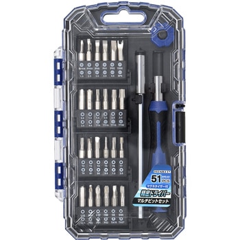 セット内容精密ドライバー本体、115mmエクステンションバー、マグネタイザー、ビット(4mm角×28mm) プラスPH000/00/0/1/2、マイナス-1.5/2.0/3.0/3.5/4.0、PZ0/1/2、S1/2、TA18/27、H0.9/1.3/1.5/2.0/2.5/3.0/3.5/4.0、H1/16・5/64・3/32・7/64・1/8・9/64・5/32(インチ)、T2/3/4/5/6/7/8、TT9/10/15/20、★0.8/1.2/2.0、000、SP6セット数51本組内容量1個