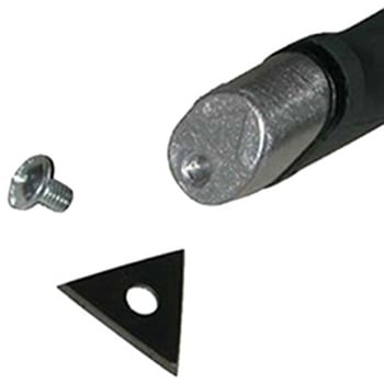 ブレードは非常に鋭利で危険です。交換する時は指などが絶対触れないようにして下さい。各部に破損やボルト・ナットなどの緩みがないか常に点検し、破損やねじの緩みがあれば修理または増し締めを行って下さい。刃に変形、ひび割れ、破損がある時は必ず交換をして下さい。超硬とは硬質の金属炭化物である炭化タングステンと結合剤であるコバルトを混合して作られる合金で超硬合金と呼ばれます。硬度が非常に高いので、金属ケレン作業や溶接スパッタ落としや切削等、幅広い用途に使用できます。ハンマーヘッド付き。刃は1枚で3回使用できます。