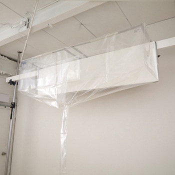 エアコン本体をすっぽりカバーするので、安心して高圧洗浄機を使用することができます。周囲への水飛散を気にすることなく、作業に集中することができます。エアコン洗浄カバーの設置には支持金具(EA115Z-40)と支持金具固定プラ(EA115Z-41)が必要です。