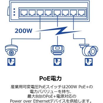 仕様アラームリレー接点:200W、MACアドレステーブル:4Kエントリ、PoE仕様:PoEバジェット、スイッチングファブリック:16Gbps、データバッファ容量:128KB、ハードウェアバージョン:Version V2.0R、PoEパジェット:最大200W(DC56V時)、最大120W(DC24V時)、筐体:IP50メタルケース、DINレール取付対応、壁掛け取付対応、接地端子セット内容本体、着脱式端子台、DINレールキット、壁掛けキット規格(ネットワーク)IEEE802.3、IEEE802.3u、IEEE802.3ab、IEEE802.3x、IEEE802.3af、IEEE802.3at適合規格CE、FCC、LVD、IEC 60068-2-27、IEC 60068-2-32、IEC 60068-2-6、IEC 61000-4-2、IEC 61000-4-4、IEC 61000-4-5能力【転送】11.9Mpps(64バイトパケット時)最大消費電力(W)5(PoE未使用時)、135.6(PoE使用時)インターフェース(デバイス)ギガビットPoE+ポート×8、LEDインジケーター製品質量(g)610動作温度(℃)-40~75動作湿度(%)95製品サイズ(mm)142×105×39.5ジャンボフレーム9KBデータ転送速度Ethernet(半二重10Mbps、全二重20Mbps)、Fast Ethernet(半二重100Mbps、全二重200Mbps)、Gigabit Ethernet(全二重2000Mbps)RoHS指令(10物質対応)対応入力電源(V)48~56 DCリレー出力1A、24V DC対応、電源2系統接続時は解放モード、電源1系統接続時は短絡モードMTBF(時間)513100内容量1台