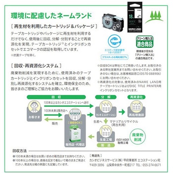 8m巻。テープ幅の合うものをお選び下さい。エコマーク取得商品。環境に配慮したカートリッジ/パッケージ《再生材55%以上(重量比率)利用》。耐久性に優れたテープです。