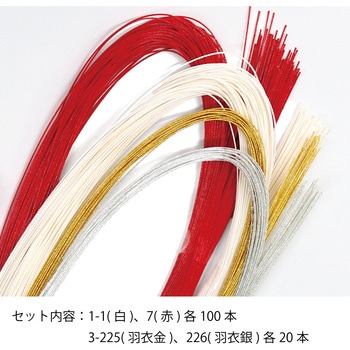 水引(90cm)各色20本:1-1(白)、7(赤)各100本、3-225(羽衣金)、226(羽衣銀)