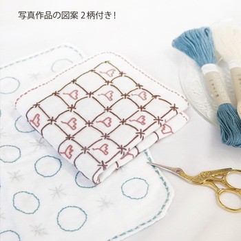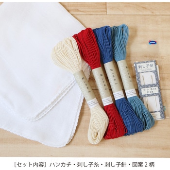 図案付き 刺し子ハンカチ・刺し子糸・刺し子針セット