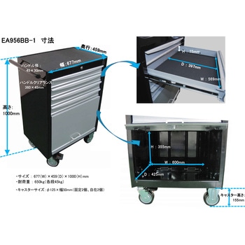 キャスターは幅広で踏みやすく、ワンタッチで解除可能。引出しはレバー付の為、移動中に開きません。コーナーがカーブ形状でケガをしにくい安全設計。握りやすいハンドル形状。1つの鍵で全ての引出しをロックするセントラルロックシステム。天板には耐久性に優れたEVAマット。ベアリング入りで開閉しやすいスライドレール。必要工具:12mm・13mmBOXドライバー or スパナ。