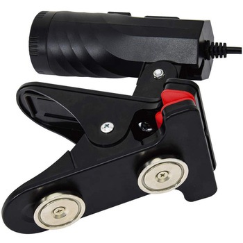 ひらく・とじる・はさむ・つなぐ・はりつける、あらゆる場所でマルチに使える!屋内用、AC100V専用、LEDクリップランプです。LEDの照射角度が自由に変えられます。電線の長さは5m、コード先端は2Pプラグです。連結用コンセント、クリップ底面にマグネット付きです。6台まで連結ができます。(全て同じ機種の場合)