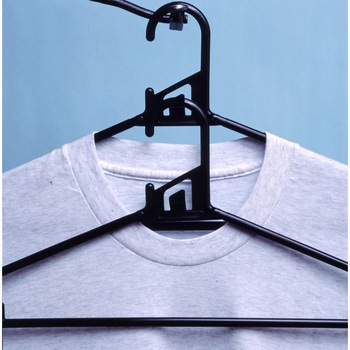 可倒式フックで襟首伸ばさず掛けられる、連結フックで重ね吊りが可能、省スペース収納