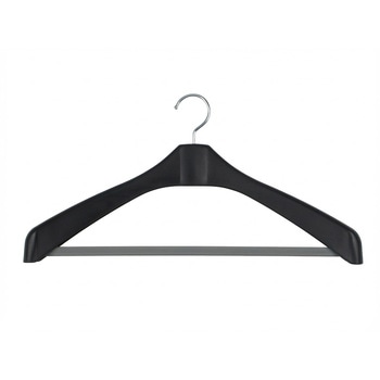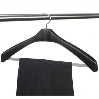 ジャケットやスーツの収納に。肩幅47cm、肩厚4cm。収納効率の良いスリムタイプ。ズボンがすべり落ちにくいすべり止めバー