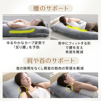 様々な寝姿勢に対応!!全身をサポートするU字まくら分厚くボリュームのある独自のU字形状で全身をしっかり支えます。うつ伏せ・横向き・抱き枕など色々な寝姿勢でリラックスして快眠できます。滑らかな肌触りつい抱きたくなる柔らかさうつ伏せ、横向き、仰向け丸洗いOK!(カバーのみ)