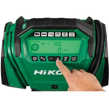 見やすい大型液晶搭載。<様々なアイテムに対応>最高圧力1100kPaで自動車のタイヤの空気入れから、浮き輪やエアベッドなどのレジャーアイテムの空気入れ、空気抜きまでこれ1台で対応。<車載電源対応>標準付属の車載用コード(DC12V)で、車からも電源が取れます(※24V車載電源では使用できません)。<自動停止機能>適正空気圧を設定すると、指定の空気圧で自動で止まります(※高圧モードのみ)。<LEDライト搭載>暗所作業でも可能!。電源 リチウムイオンバッテリー(18V/5.0Ah) 車載電源(DC12V)、最高圧力 160PSI/11Bar/1,100kPa(高圧モード時)、吐出量 高圧モード:14L/min(200kPa時) 高容量モード:430L/min (18Vバッテリー満充電時)、高圧モード ・自動車、オートバイ、自転車などのタイヤ全般 ・バスケットボール、サッカーボールなどの球技ボール ・ビーチボールなど[BAR][PSI][kPa]と圧力の単位が変更できる単位変更ボタン付き、作業量(目安) 【高圧モード】 自動車:約13回(約3分) ロードバイクタイヤ:約48回(約50秒) サッカーボール:約110回(約40秒)【高容量モード】 エアベッド:約60回。