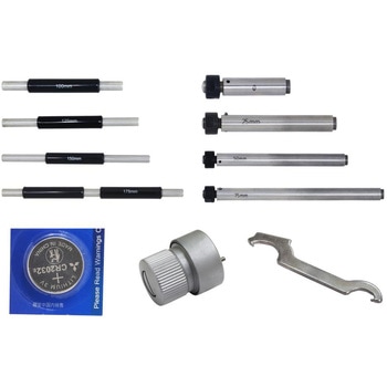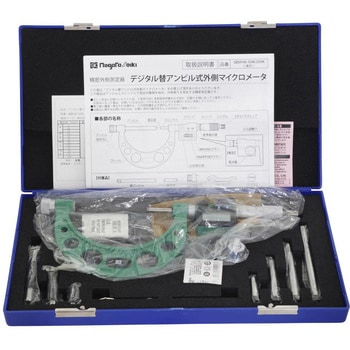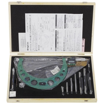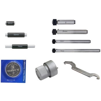 ・この1本で広範囲測定ができます。・精度保証のため、検査時の数値を記した検査表付です。・アンビルを取り替えることにより、1個の本体で測定範囲を広くすることができます。・測定面は超硬チップ付です。・定圧装置付です。・オートディスプレイオフ機能付(約20分)です。・フレームは塗装仕上です。・基準棒3本付です。