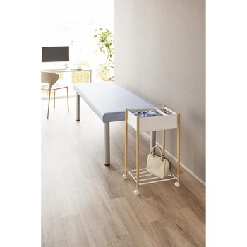 小物トレー付き下段が棚の収納ワゴン 2段 タワー ホワイト