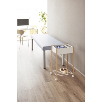 棚:スチール(粉体塗装) 支柱:天然木(ウレタン樹脂塗装) バスケット・小物トレー:ABS樹脂 キャスター:ナイロン