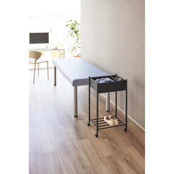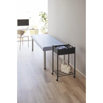 小物トレー付き下段が棚の収納ワゴン 2段 タワー ブラック