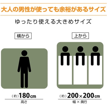 約200×200cmの広さ。高さは約180cm(最高部)もあります。大人の男性でも余裕がある広い空間です。