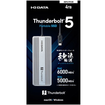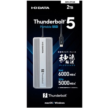 Thunderbolt(TM)5認証取得済み、次世代スピードを実現する超高速ポータブルSSDです。最大読み込み約6000MB/s、書き込み約5000MB/sの圧倒的スピードで、8K/12K RAW動画や大容量データも快適に転送できます。さらに、安心の5年保証付きで長くご利用いただけます。