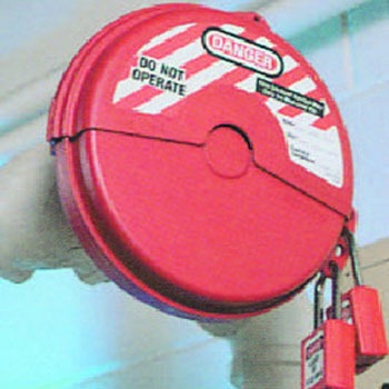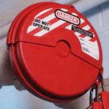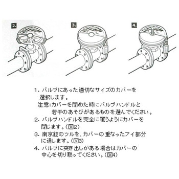 鍵は付属しません。バルブ操作ハンドルを覆い囲むことで誤作動を防止します。中央部分をカッターなどで切り取ることにより、軸が突き出ているタイプにも取り付けることができます。本体は耐薬品性、電気絶縁性があります。バルブロックアウト。