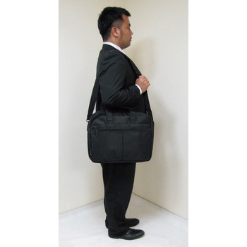キャリーバッグホルダー、ショルダーベルト付き。B4ファイル収納可能。外ポケット1個、内ポケット2個。