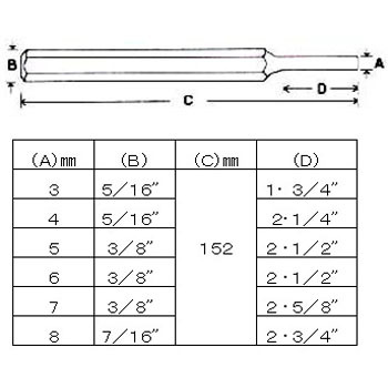 6本組。セット内容:EA572MH-3(先端径:3mm)、EA572MH-4(先端径:4mm)、EA572MH-5(先端径:5mm)、EA572MH-6(先端径:6mm)、EA572MH-7(先端径:7mm)、EA572MH-8(先端径:8mm)。