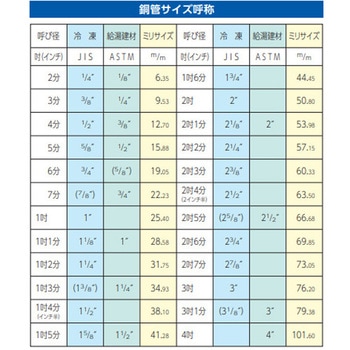 セージング:3/16”・1/4”・5/16”・3/8”・1/2”・5/8”・3/4”、フレアー:1/8”・3/16”・1/4”・5/16”・3/8”・7/16”・1/2”・5/8”・3/4”