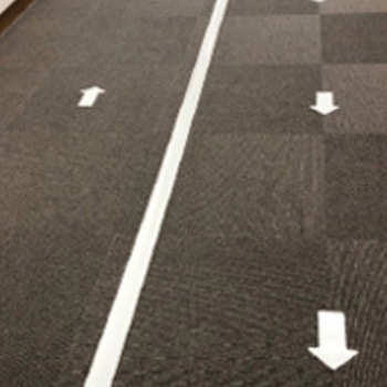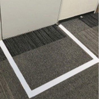 カーペットの上でもきのこ状の突起がついた面ファスナーでしっかり貼ることができる。面ファスナー仕様なので、カーペットからはがして再使用が可能。簡単にはがせるので位置変更も容易です。表層には汚れにくく高耐久なポリエステルフィルムを採用。