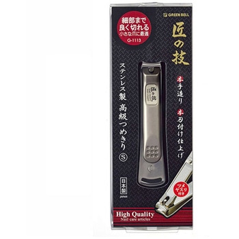 切れ味抜群の国産爪切り。高硬度焼入れと二度刃付けにより、高い耐久性と鋭利性。指をかけるテコ部分は亜鉛ダイカスト製法で肉厚になっているため、加えた力が確実に伝わり硬い爪も無理なくカットできます。小さい爪に最適で小回りが利くSサイズです。テコの裏についているヤスリは微粒の細かい目でなめらかに仕上がります。機能性とデザインに優れた匠の技ロングセラー。キャッチャーケース無し。
