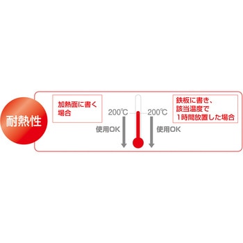 入数:10本。150℃の加熱面でも書ける、固形ペンキタイプのマーカーです。150℃の加熱面にも直接筆記が可能。ペンキのように飛沫で服や手を汚すことがありません。プラスチック・鉄・発泡スチロールなどの濡れた面や水中での筆記も可能。鉄、鋼材、木材、合成樹脂、ガラス、ゴム、皮革、紙へのマークチェック用。塗装の剥離、キズの補修(自動車、トタン、建材、サッシ、門扉、フェンス)、ボルト、タッピングマーク。油性。ビニル系床材(長尺シート)を汚染しにくい。中字。固形タイプのマーカー。