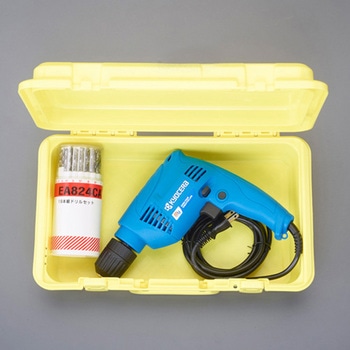 セット内容:・電気ドリル(EA801A-6)、・ドリルセット(EA824CA)、・ハンディボックス。【電気ドリル仕様】・電源:AC100V・240W、・能力:鉄工:Φ10mm、木工:Φ13mm、・チャック能力:0.8~10mm、・回転数:2100rpm、・二重絶縁、正逆転、・サイズ:216(W)×60(L)×200(H)mm、・重量:1.0kg、・コード長:2m、・替カーボンブラシ:EA813RA-5。【ドリルセット仕様】・材質:HSS(ハイス)、・ドリルサイズ:1.0・1.5・2.0・2.5・3.0・3.5・4.0・4.5・5.0・5.5・6.0・6.5・7.0・7.5・8.0・8.5・9.0・9.5・10.0mm(19本組・各1本入り)、・取り出しに便利な回転収納ケース。【ハンディボックス仕様】・材質:ポリプロピレン、・サイズ:360×216×102(H)mm、・重量:540g、首径 Φ43mm。