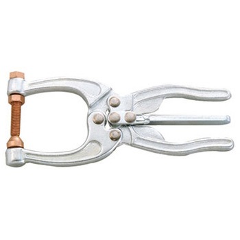 スイベルヘッド付き。ハンドルを開くと、口も開きます。クランプ部を銅メッキしているので、溶接ガスが付着しません。