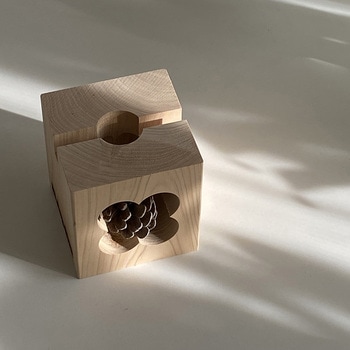 飾って、燃やして自然に還るまでの時間を味わう商品です。スマホ・タブレットスタンド、ブックエンド、ウッドスピーカー、植木台など様々な用途でご使用いただけます。土佐のヒノキを使用したインテリアに馴染みやすいデザインのもこん炉です。松ぼっくりが天然の着火剤となるのでインテリアとして使用した後はアウトドアでの調理・焚き火で燃え尽きるまで楽しめます。