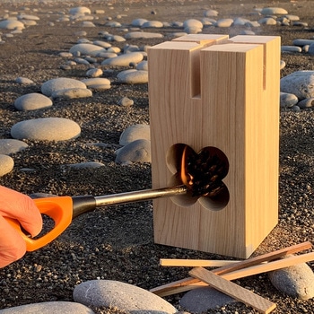 飾って、燃やして自然に還るまでの時間を味わう商品です。スマホ・タブレットスタンド、ウッドスピーカー、植木台など様々な用途でご使用いただけます。土佐のヒノキを使用したインテリアに馴染みやすいデザインのもこん炉です。松ぼっくりが天然の着火剤となるのでインテリアとして使用した後はアウトドアでの調理・焚き火で燃え尽きるまで楽しめます。