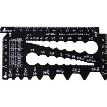 用途ボルト、ナットのサイズ確認に。仕様【ナットゲージ】M3、M4、M5、M6、M8、M10、M12、M16(JISは適合品のみ)、【長さゲージ】皿ねじ:65mm(8~30mmは1mmピッチ、30~65mmは5mmピッチ)、六角ボルト、六角穴付ボルト、なべねじなど:65(8~30mmは1mmピッチ、30~65mmは5mmピッチ)測定範囲(mm)0~120ゲージサイズ(呼び径)(インチねじ)No..5、No.6、No.8、No.10、1/4、5/16、3/8、7/16、1/2、9/16、5/8、3/4、(メートルねじ)M3、M3.5、M4、M5、M6、M8、M10、M12、M14、M16、M18、M20製品質量(g)62製品サイズ(mm)80×160×2.5内容量1本