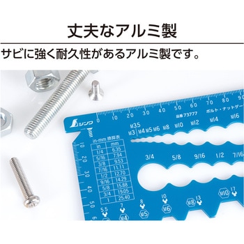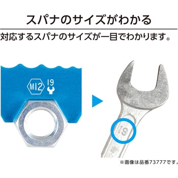 当てたり挿したりするだけで簡単にボルトやナット、対応スパナのサイズが確認できます(ナットはボルトから外さずにサイズを確認できます)。