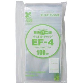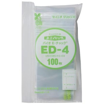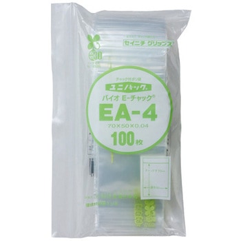 入数:100枚。フィルム厚0.04mmのチャック付ポリエチレン袋です。開けやすく閉めやすいE-チャックを採用。衣類・日用雑貨・食品など幅広い用途に使用できます。サトウキビ(非可食成分)の廃蜜糖からできた「グリーンポリエチレン」を使用しており、従来品と比較してCO2を約20%削減(メーカー比)。バイオマスマーク認定品。食品衛生法適合品。日本製。