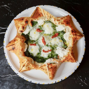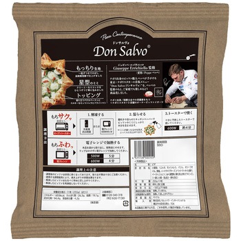 星形ピッツァ「ドンサルヴォ」はピッツェリア「NAPOLI STA CA」の代名詞。カルツォーネ状の耳からはクリーミーなリコッタチーズが溢れこれまでに無い味わいをお楽しみいただけます。<もっちり生地>一枚ずつ手で伸ばし長時間発酵で仕上げました。高加水で空気を含んだ pizza contemporanea スタイル。小麦粉はPeppe の実店舗でも使われる「Casillo社」製を使用。pizza contemporanea(ピッツァコンテンポラネア):近年ナポリを中心に浸透しつつあるピッツァの新定番スタイル。外はサクッと香ばしく中は空気をたっぷり含んでふんわりもちっとした独特の食感が特長。<星形のミミ>クリーミーなリコッタをひとつずつ丁寧に包みました。最後の一口まで美味しさが続きます。<トッピング>香り立つ自家製バジルペーストに ミルキーなモッツァレラとドライトマト。