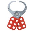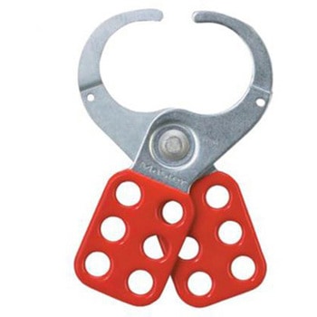 機械や装置の運転停止状態を維持するために、起動装置にロックアウトハスプを取り付けて施錠管理することで、管理者以外による不用意な操作・作動を防ぎます。6重ロックアウト。複数の担当者が安全を確認しなければ、ロックを解除することはできません。安全性を確保するため複数の管理者が同時に対象物をロックアウト可能。